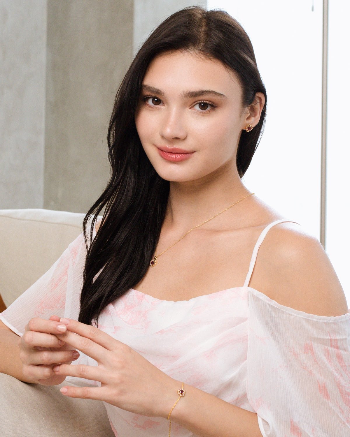 Vianne Red Heart Rhodolite Garnet Jewellery Set in 18k Gold Vermeil